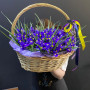 101 синий ирис в плетенной корзине в Буе