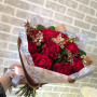 11 красных эквадорских роз с нежными веточками цвета вишни - это страстный букет, способный передать Ваши чувства обворожительной красотке. Не останется без внимания его сочные оттенки, трепетные кружевные лепестки и изящное сочетание цветов.