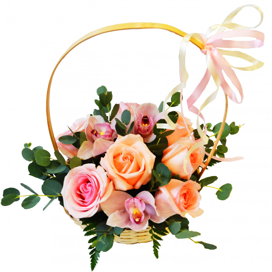 Нежная трепетная композиция из эквадорских роз, благоухающих орхидей и свежих веточек эвкалипта в романтичной плетёной корзинке с тонкими лентами лучше иных слов передаст Ваши тёплые и настоящие чувства получательнице. Композиция без слов расскажет о Ваше любви к получательнице или просто подскажет Вашей возлюбленной, насколько сильно она Вам дорога.