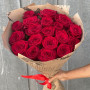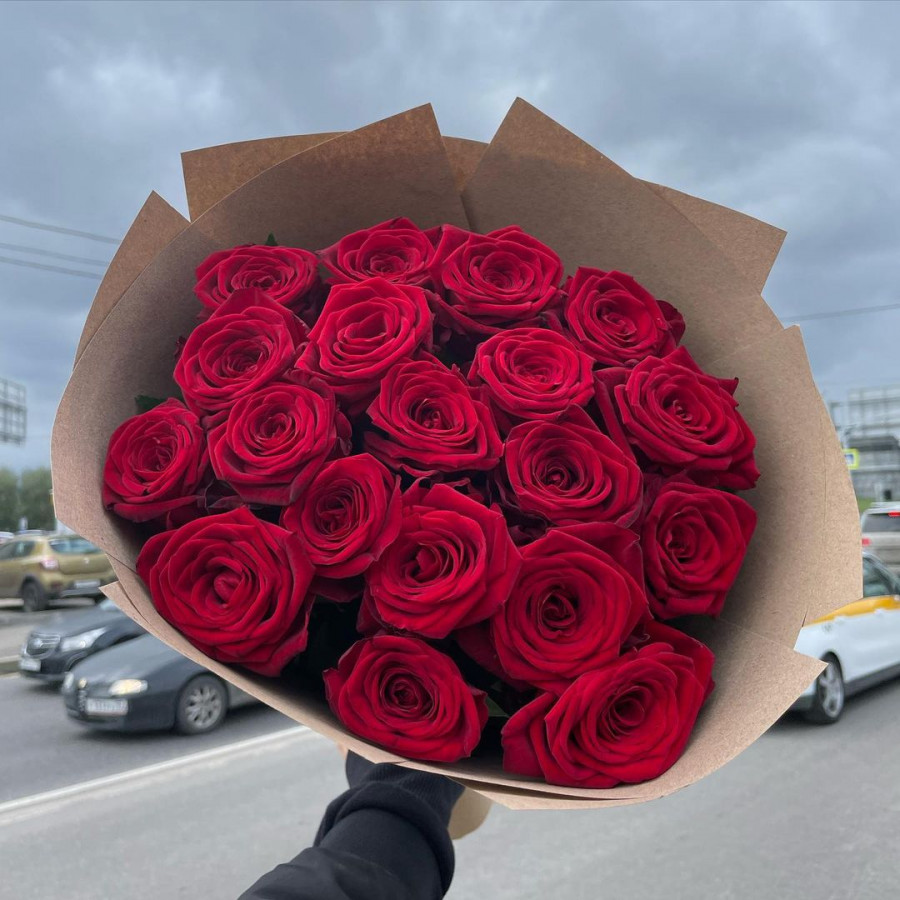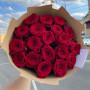 На фото букет из 19 красных роз. В составе: роза 19 шт, крафт-бумага 1 шт, атласная лента 1 шт, . Все цветы свежие и ароматные, букет красиво оформлен и отлично подходит для подарка. Доступна доставка цветов или самовывоз.