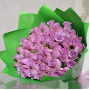 На фото букет из 51 сиреневой розы. В составе: роза 51 шт, крафт-бумага 1 шт, атласная лента 1 шт, . Все цветы свежие и ароматные, букет красиво оформлен и отлично подходит для подарка. Доступна доставка цветов или самовывоз.