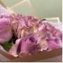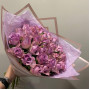 На фото букет из фиолетовых кенийских роз. В составе: роза (кения) 33 шт, крафт-бумага 1 шт, атласная лента 1 шт, . Все цветы свежие и ароматные, букет красиво оформлен и отлично подходит для подарка. Доступна доставка цветов или самовывоз.