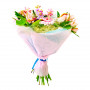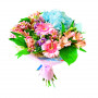 В этом букете нежные розовые герберы, альстромелии и полевая виктория, словно ранний рассвет, оттеняют пышную гортензию цвета морской волны. Сладкий, необычный аромат будет тонким шлейфом преследовать получательницу, а нежное и одновременно яркое сочетание непременно привлечет её внимание и заставит её еще долго думать о Вас, море и рассвете.
