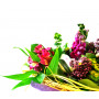 Необычное сочетание крупных свежесрезанных роз, грациозных орхидей, альстромелий и полевых цветов в окружении листов питтоспорума и рускуса в одно мгновение перенесут получательницу в восхитительный зеленый сад, полный благоухающих цветов и зелени. Удивите возлюбленную необычным подарком, который еще долго будет радовать ее яркими цветами и благоуханием.