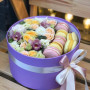 На фото композиция из 7 макарун и орхидеи. В составе: макаруны 7 шт, орхидея 3 шт, роза 9 шт, эустома (лизиантус) 3 шт, гвоздика 2 шт, коробка (m) 1 шт, . Все цветы свежие и ароматные, букет красиво оформлен и отлично подходит для подарка. Доступна доставка цветов или самовывоз.