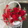 На фото корзина из роз и гербер. В составе: гербера 2 шт, роза 4 шт, кустовая роза 5 шт, эвкалипт 5 шт, корзина (m) 1 шт, атласная лента 1 шт, . Все цветы свежие и ароматные, букет красиво оформлен и отлично подходит для подарка. Доступна доставка цветов или самовывоз.