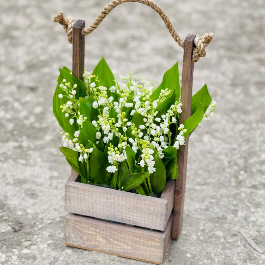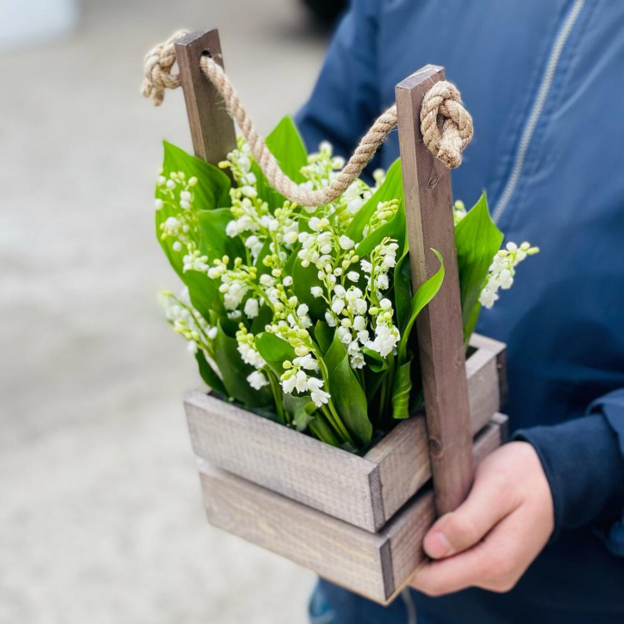 Ландыши в деревянном ящике в Буе