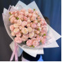 На фото пионовидные розы бомбастик. В составе: кустовая пионовидная роза 25 шт, крафт-бумага 1 шт, . Все цветы свежие и ароматные, букет красиво оформлен и отлично подходит для подарка. Доступна доставка цветов или самовывоз.