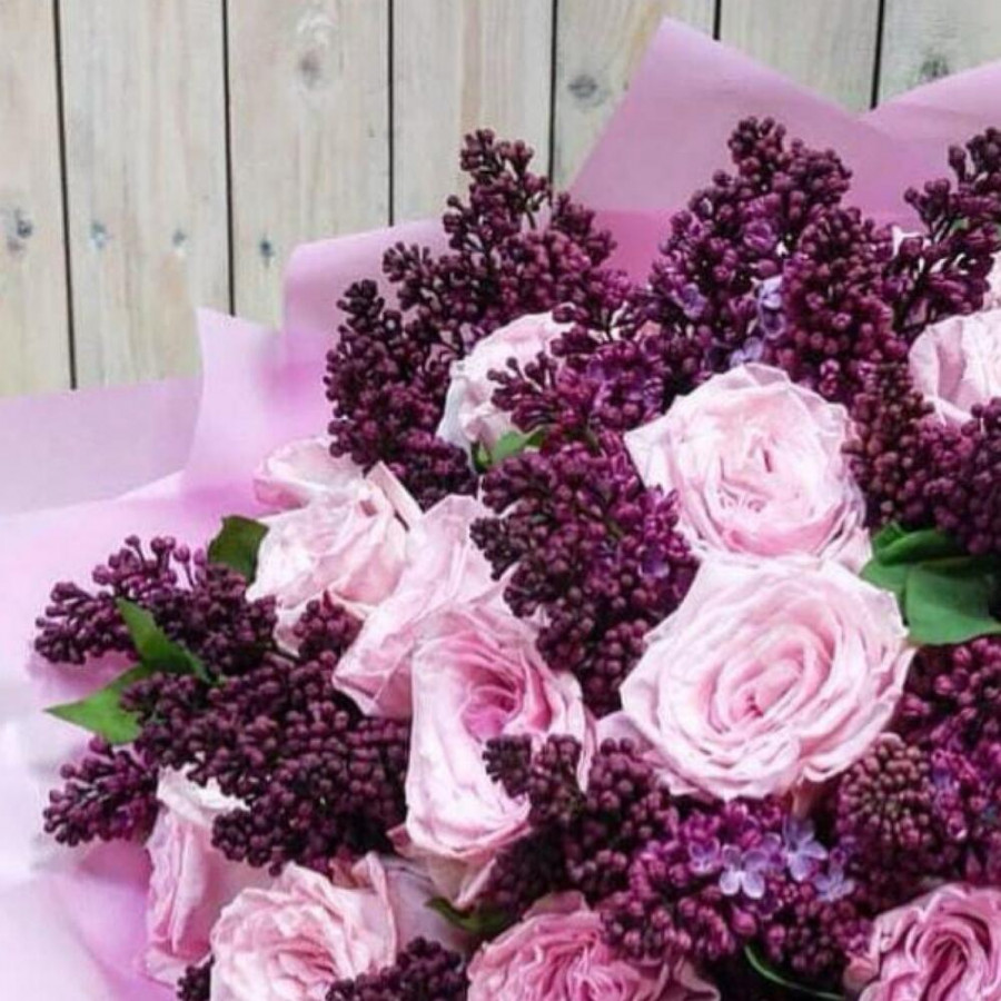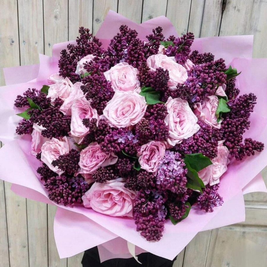 Весенний букет сирени и роз в Буе